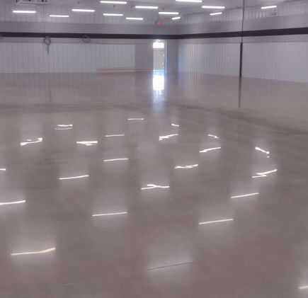 Polished concrete can reveal its natural patterns and media producing a bright marbled or granite type look. Colors or dyes can be applied as well.